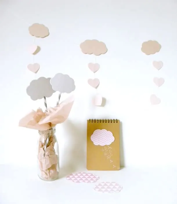 This “cloudy” Valentine’s day garland will actually brighten up any child’s room and is a simple, modern garland that would look lovely hung up on any day.