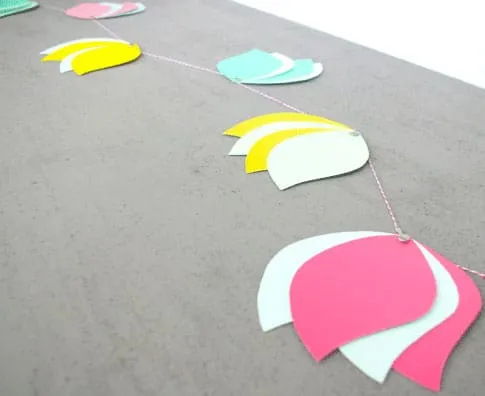 As spring flowers begin to bloom, bring some of those vibrant colors indoors with this clever craft. Using paint chips, you can turn them into colorful flowers to display around the house, or in this case strung together as garlands.