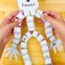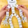 Wooden beads and craft wooden numbers are mainly all your need to craft this adorable quarantine ornament! We made the hats out of cardstock although felt would probably stand the test of time. The tiny toilet paper is made with a wooden spool and bit of paper towel! Again you could use fabric if you wanted this DIY ornament to last as long as possible.