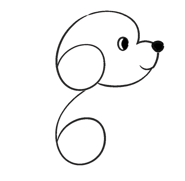 Now it’s time to bring the dog to life: Add a small circle inside the loop of the first 6 to create the dog’s eye. Draw a cute round nose at the top of the straight line of the 6. Add a curved line to make a smiling mouth.