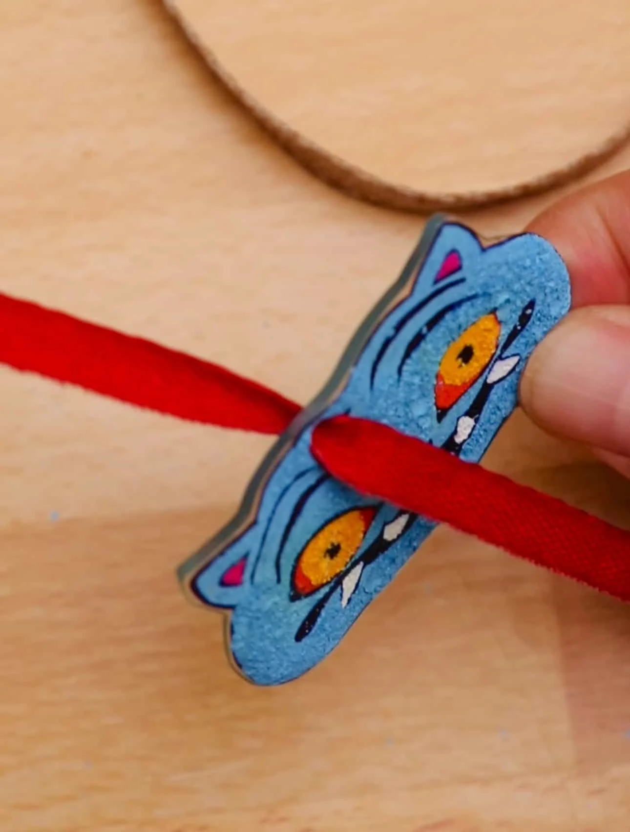 Thread ribbon through the hole to finish your KPop Demon Hunter ornament.