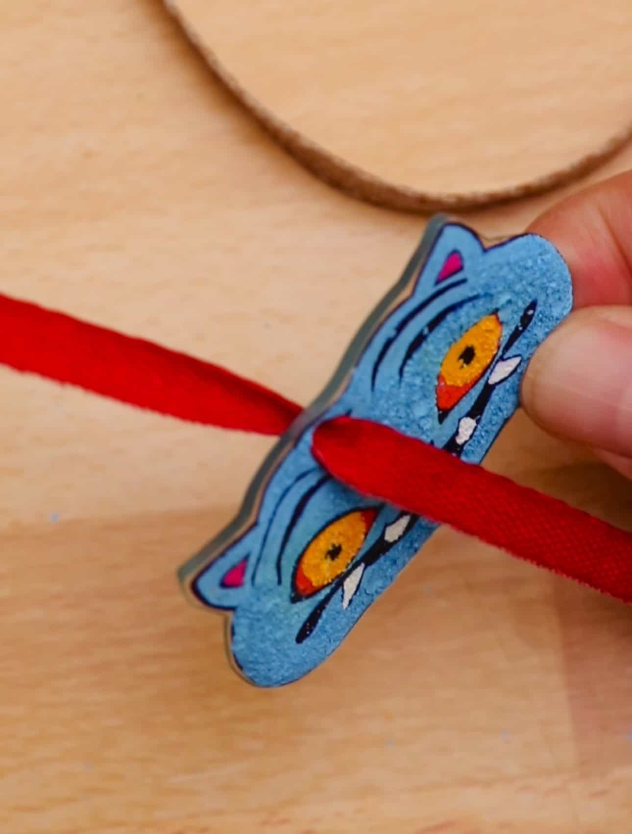 Thread ribbon through the hole to finish your KPop Demon Hunter ornament.