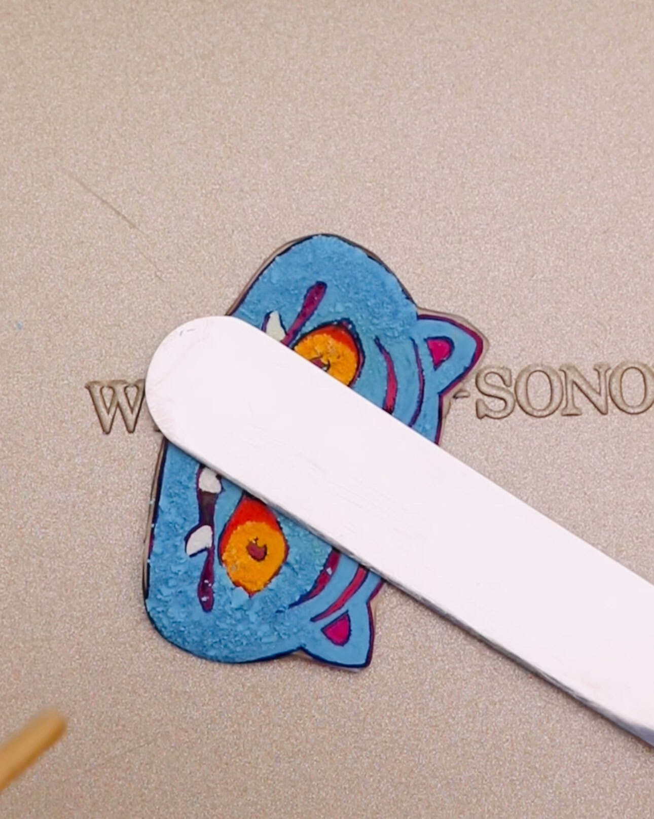 These KPop shrinky dinks turn into sturdy, glossy charms that look great on a tree, backpack, or keychain. We created the KPop Demon Hunter version using this Derpy Tiger illustration as inspiration using paint markers.