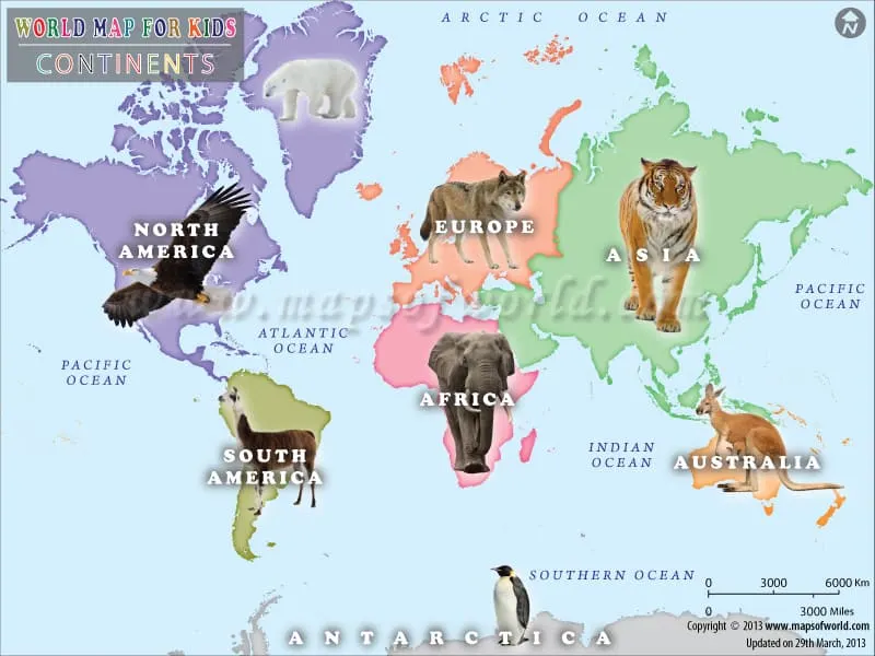 This is a awesome free printable map that visually depicts which animal resides most in each continent.