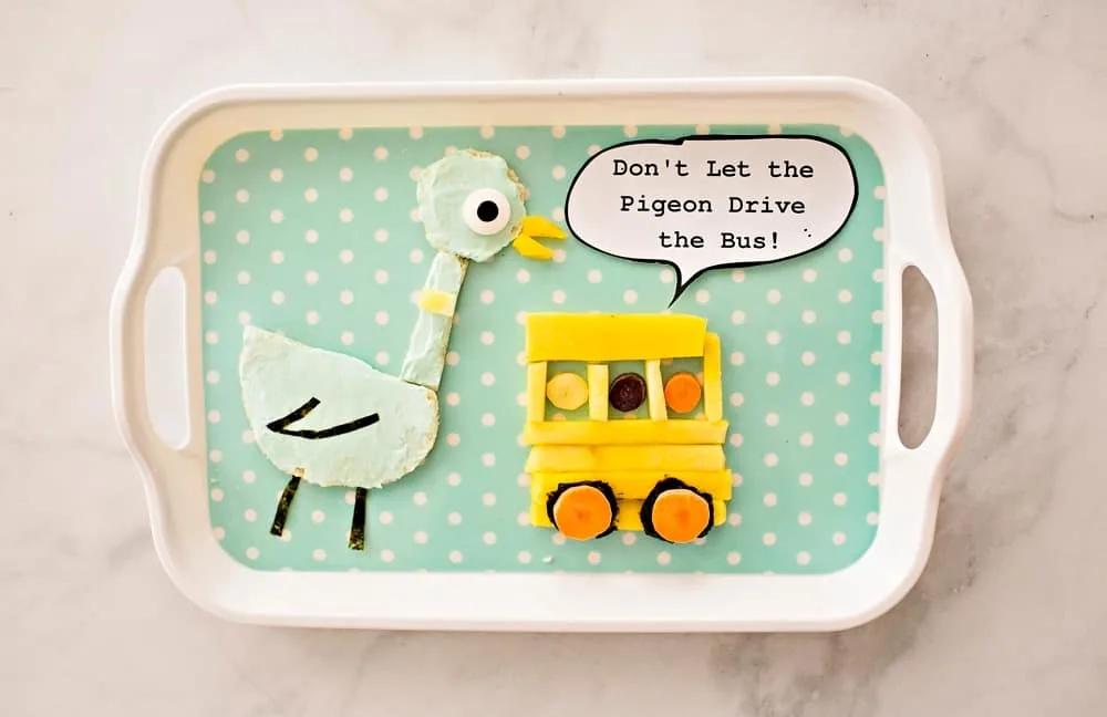 Optional: Grab our free printable Don’t Let the Pigeon Drive the Bus! speech bubble which is a cute way to round out the Pigeon lunch book theme!